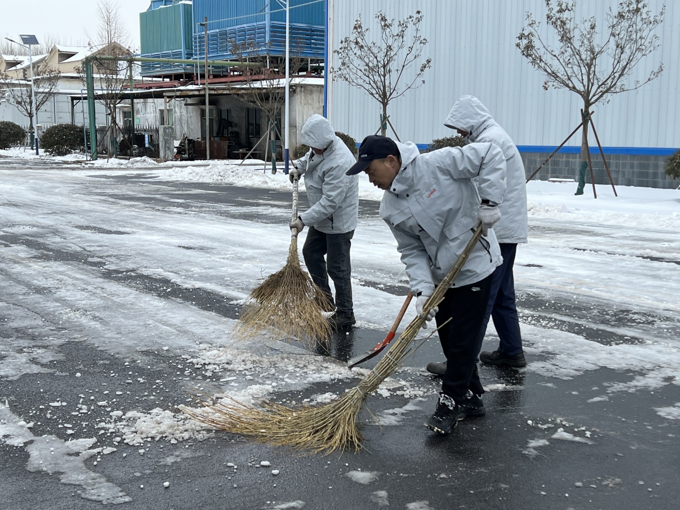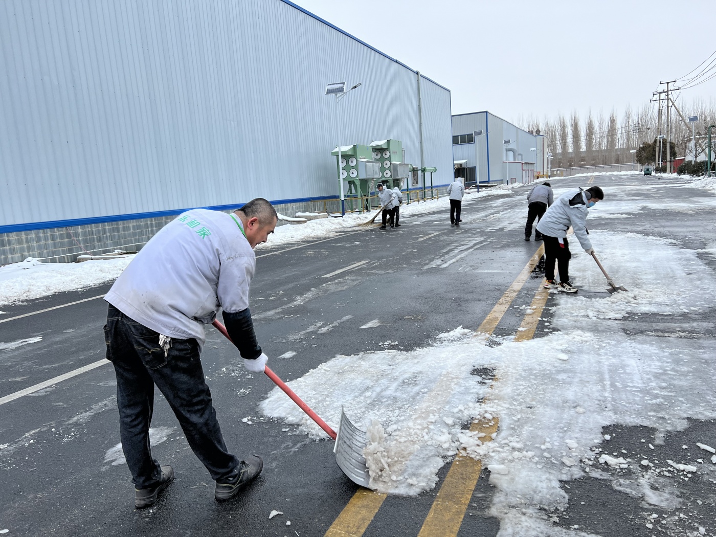 天氣雖冷,依然擋不住大家高漲的勞動熱情,掃雪現(xiàn)場氣氛熱烈,大家攜帶清雪工具,分片包干,分工有序,全力以赴開始對生產(chǎn)區(qū)主次干道、辦公樓前、各廠房、庫房等處的積雪進行全面清理。