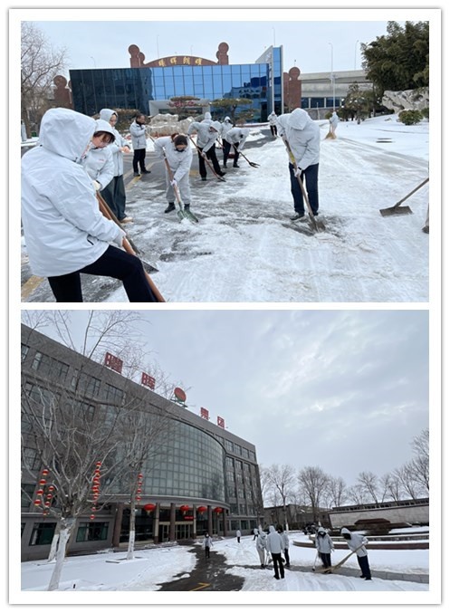經(jīng)過一個多小時的努力奮戰(zhàn),集團院內(nèi)積雪清掃干凈,開辟出一條條洋溢著暖暖溫情的安全之路。